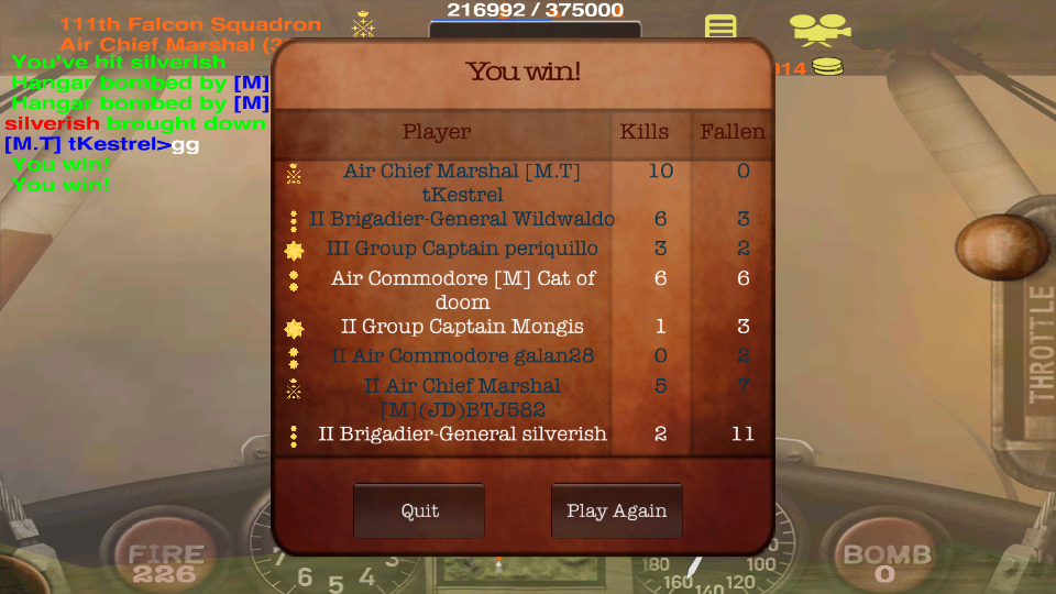 Thanks BlueDane! Had a lot of fun flying with you blue. Turned out to be a good one too! us against Davy crockett one and strombringerfest!