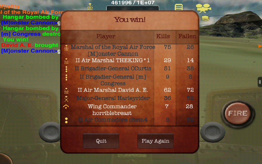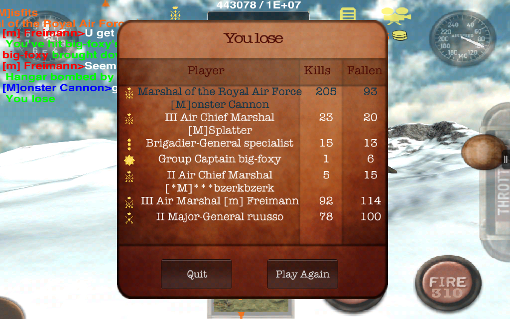 And the games are getting more and more glitchy. Reds were spawning on my ship, then reappearing on the proper side, flying tanks (though that did get me one shot at the ship), disappearing ships (cost me a shot), disappearing planes, jumping and fidgety flights, it's looking more and more possessed with each round. Saw RAP for ten seconds maybe, then he got booted, I think. Game is not going well here lately. Anyway, not much time for flying tomorrow, got some classes to work on, family visits, and probably oil changes for the cars, so in the mean time happy hunting y'all!
