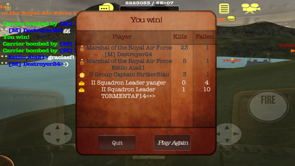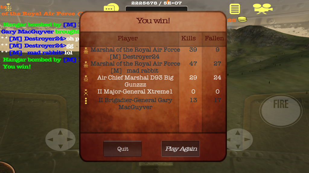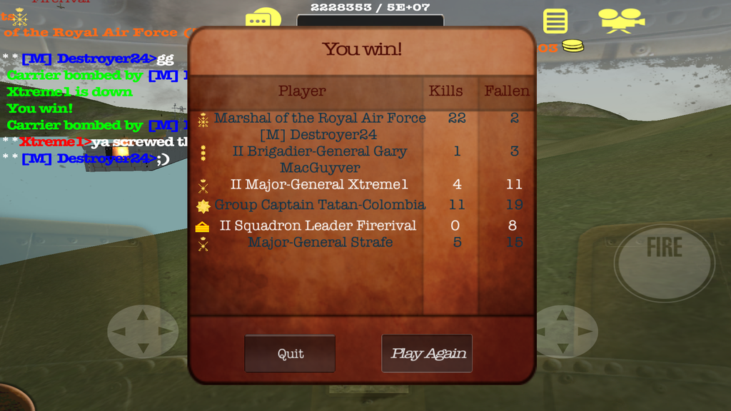 Had some fun Afternoon games today. Got to fly with, mostly against, a bunch of [M]'s. Sir Crockett, Flatline, WharfRat, and a couple others I' ll kick myself for not remembering. Dumped and reloaded the app a few times, knock on wood (knock,knock, knock) think I finally got the mysterious reversing issue to go away. 80,000 points to the next step on the Stairway to stripes.