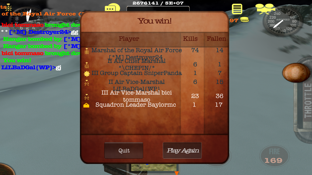 Now this, it was like one game or something. But I'm honored to be such a pilot but I doubt I have half the skill of the big guns guys like Sir T, Sir Hulk, B52, Davy (duhh).
