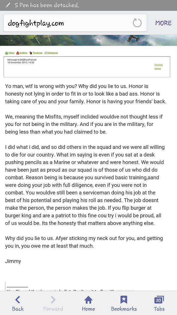 Good job for calling him out, Misfits. Definitely a fraud. Was chatting to him in game a while back and asked a few questions about Pacific Command (PACOM) and Marine Corps Forces, Pacific (MARFORPAC), his most likely chain of command if based in Hawaii. We Australians work very closely with MARFORPAC so we know them well. Elements are based in Darwin and we exercise with them annually (as an aside, US Marines are almost as good as Australian Diggers, but that's a debate we can have at another time lol). Even if just a relatively junior marine he would still have known some of the answers, but he was too vague and, by coincidence, soon dropped out of the game. I was always suspicious but didn't want to meddle in your business.