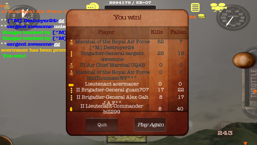SHEESH...That ended up being a long battle!!! Had I known, I would've stayed, cut your kills in half and taken the win in half that time