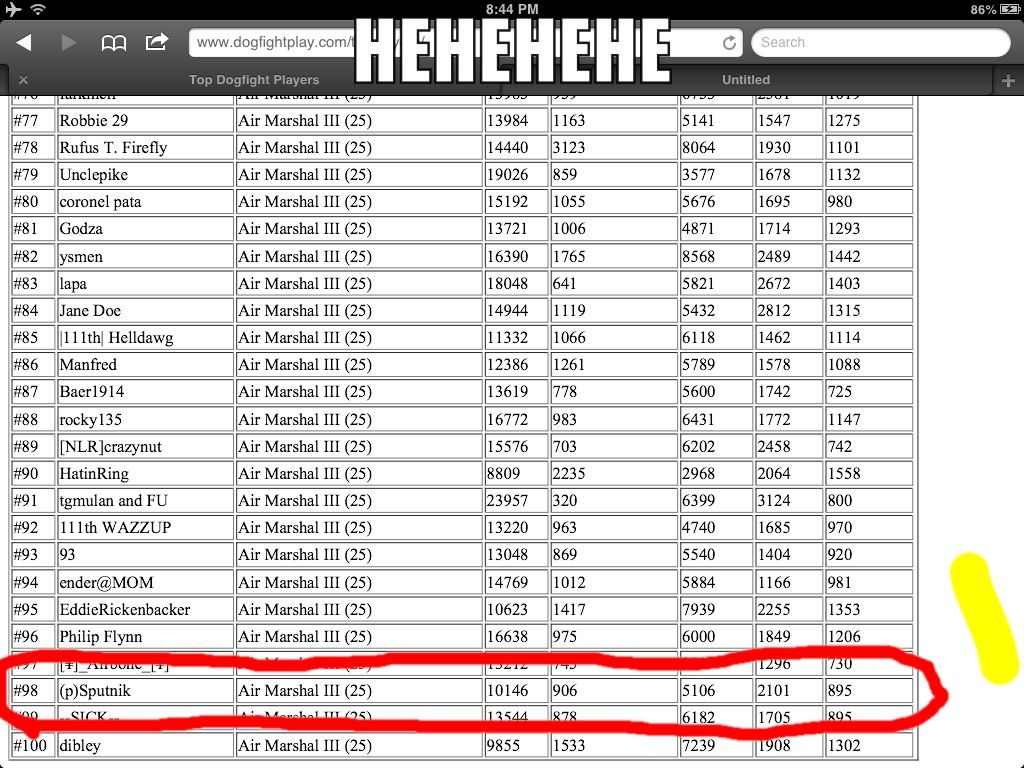 phantom fighter wrote: Btw, im #323 on the list. And also, im only a major general. It glitched out and said im a third major general. Funny though, i. In tue top twenty for thirdnmajor generals.....