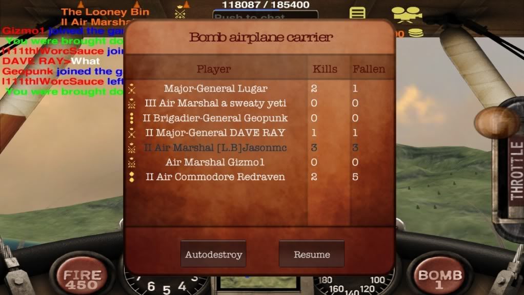 For me all kills involved a bomb. If one of the bomb-dumping cowards that outnumbered us 6:2 made it passed my head-on attack and wasn't carrying, it also involved me dropping my bomb to match him in the chase. If I had 3 or 4 flying around me at once, I dropped my bomb and took them down. With that being said, I landed 2 bombs and 2 tank shots on the boat. I'll take that and the kills I had... Any day. As for my partner, I don't know how much he carried, but I saw him land one on target. So, I know he did at least once.