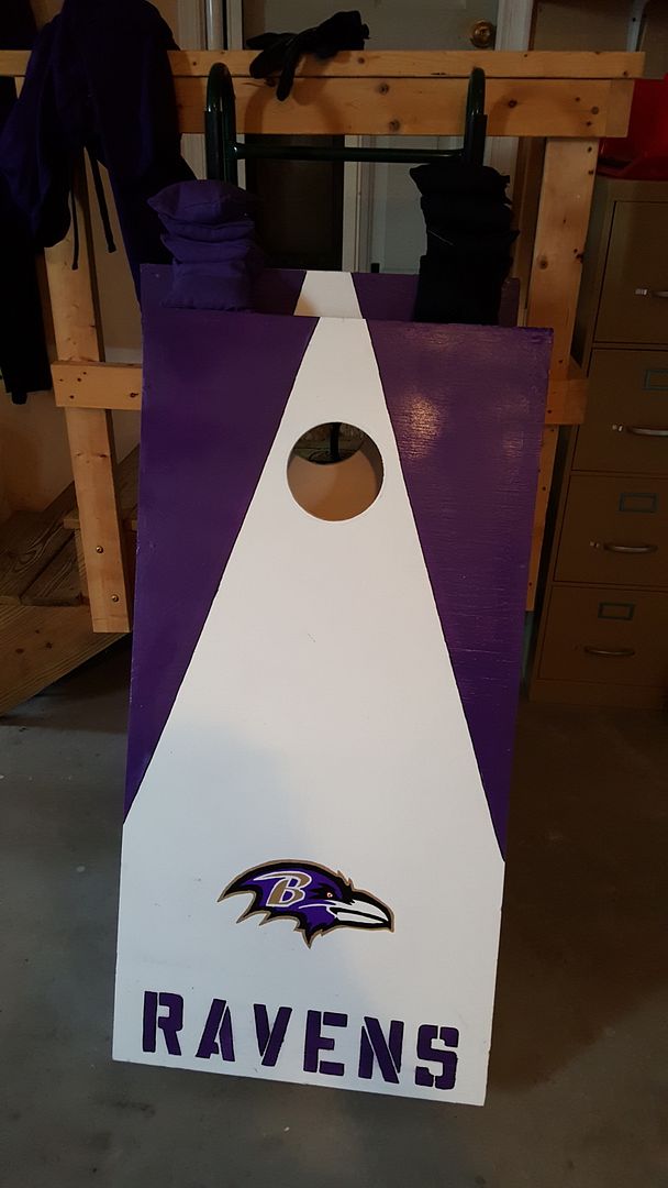 My first present of the year. Ravens corn hole boards. Cant wait to use them. We have alot of cook outs and parties during the summer months. My buddy got tired of bringing his to my house so this was my present. I love them!