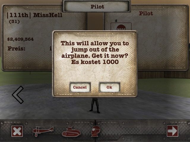 I hit the pilot icon then the red parachute icon, I agree the 1000$ with ok but I get no chute.