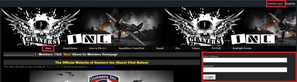 the gunners inc website is open to the public, so in order to get to the members section click "main"