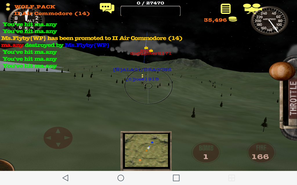 Even though I wanted to shoot JJ at the time (and did!), I've got to say that he showed tenacity of purpose and a lack of fear. He didn't care that I was killing him repeatedly as long as he stopped me from bombing his hangars---which he actually managed on one run, and made it very difficult the rest of the time. So, my hats off to JJ for showing wolf-like determination. Owwwwoooooooohhhhh!