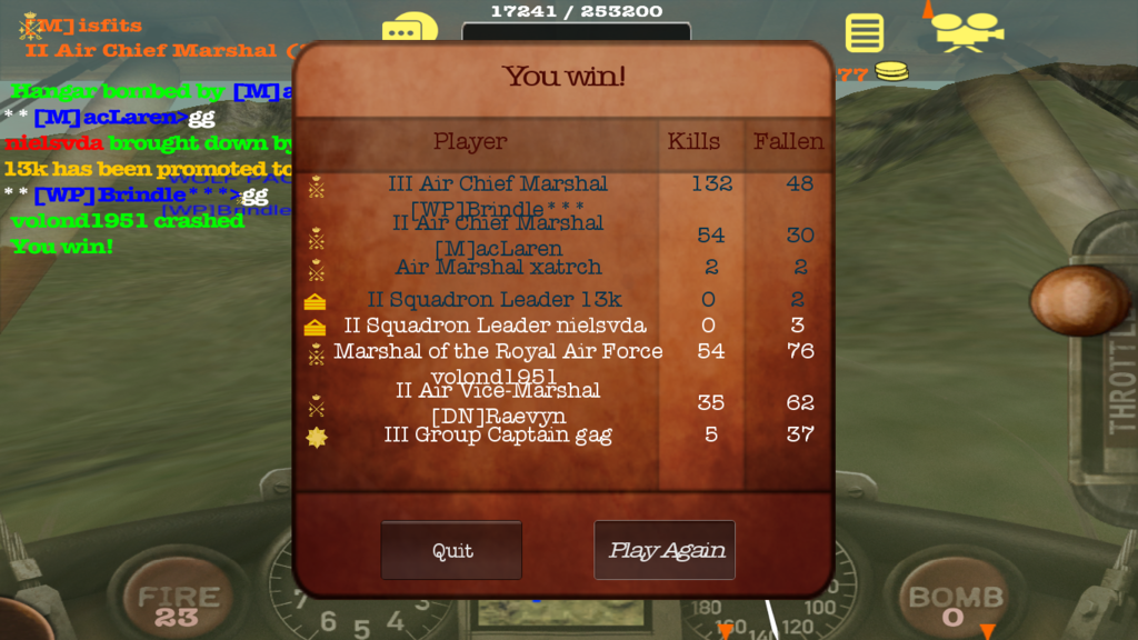 Ah, that's why you didn't howl at me! No worries legionz, it was a fun game and even more fun seeing you in a game as blue! I was watching you turn fight with Z and issac.... good flying indeed! You and i had a really good run when we went at them together, didnt we? I knew you had my six.... well done!