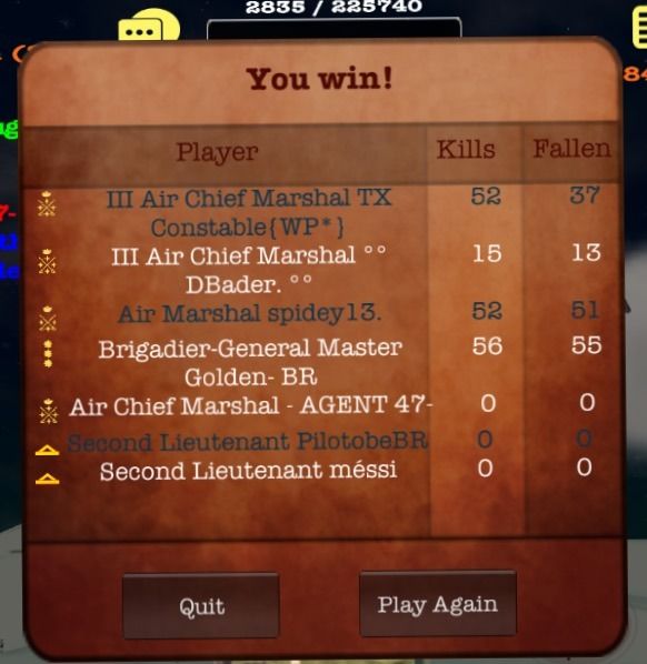 Just realized I completely forgot to mention TreeHell's amazing performance of 252 kills---probably because I'm still patching all the holes in my poor Sopwith Camel! Also, I'd like to compliment Skeeter on doing such a great job with HGA at the same time as continuing to prove what a deadly wolf he can be! Snow Wolf has also contributed to the well-being of the Pack and her reputation. Dickless, my brother wolf, has also made his presence known up in the skies of DogFight.