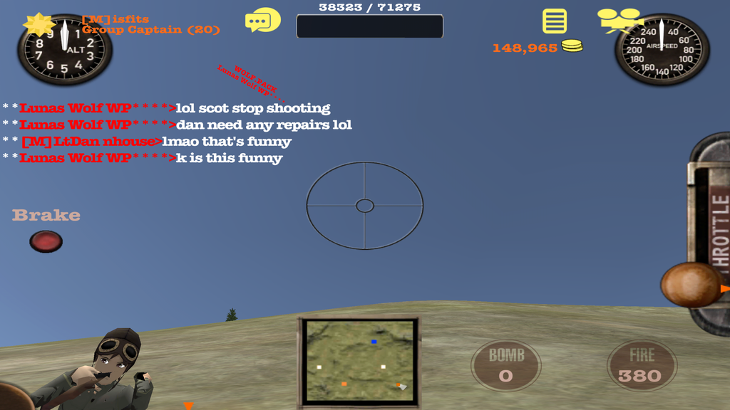 I will probably need two weeks. The good news is, I am winning dogfights rather consistent. Had one the other night played with two morafs I have never seen before. We were all gunning for number fifteen. It was a three way turn fight, so I pulled a quick decelleration, just like Tom Cruise in TOP GUN. The guy flew over me,I linedup, quick flick of the fire button and three rounds tapped him out. That was for me a moment that I wish one of you had witnessed. I wish I could have that on a highlight reel...