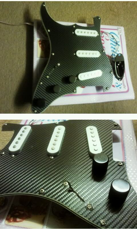 I just thought id judge the reaction, thought id get practicing my carbon laying technique on my spare scratchplate - im quite happy and i think il cover the hss when it arrives! - the knobs are going on the hss to match up with the rest of the black hardware
