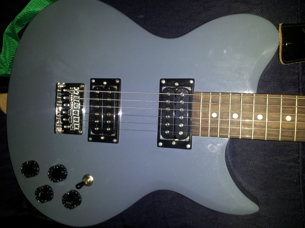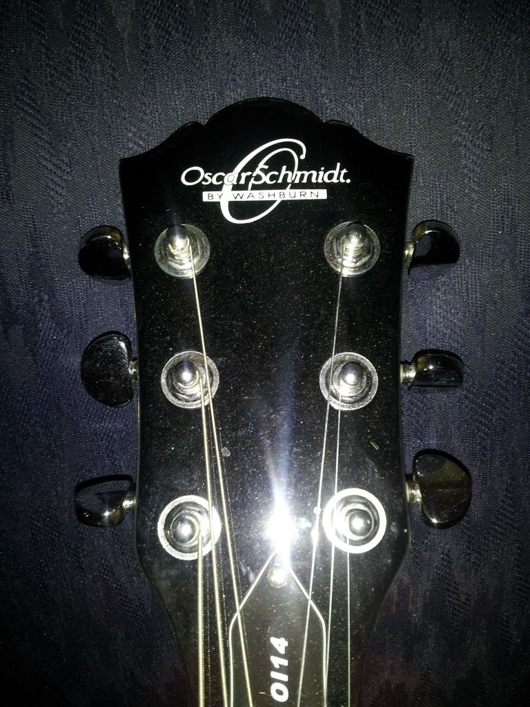 Sorry to disappoint you, but its not a les Paul and its not purple. Lol just bad lighting I guess. That's the Oscar Schmidt and its a light metallic blue. I took a couple more pics but it still doesn't look the same.