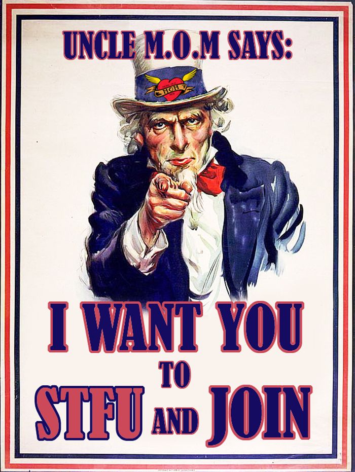 Chris, you, Halle and Ganady, assuming the family who tags together....er...lags together...are cleared for takeoff into one of our newly launched divisions. Bride of M.O.M and Full Metal M.O.M are up and operating, Planet of the M.O.Ms and M.O.MZILLA will be active asap and Dawn of the M.O.M is coming soon to a thingy near you.